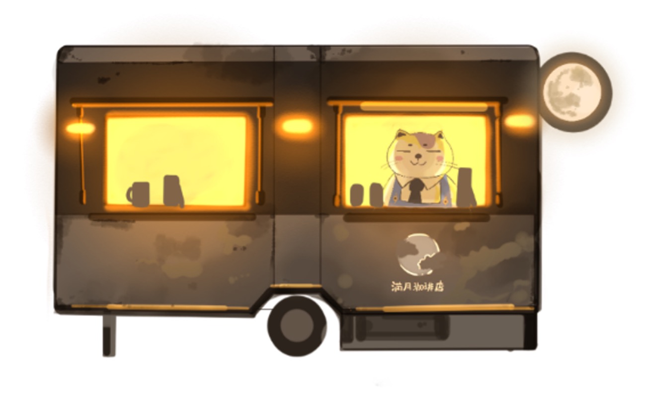 このたび、ACHI BASEのCAFÉにて、人気イラストシリーズ「満月珈琲店」とコラボレーションした「満月珈琲 阿智店」が期間限定でオープンします。