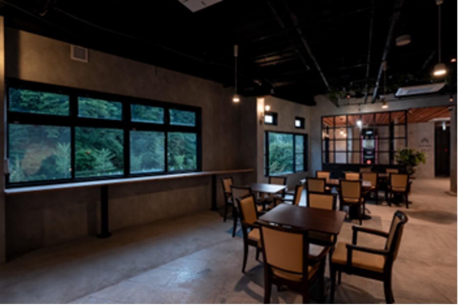 広々とした窓からは阿智川を眺めることができ、春には咲き誇る花桃を楽しみながらリラックスした時間をお過ごしいただけます。バスの出発時間までゆったりと過ごすのも、ACHI BASEで購入できるクラフトセットを使って、ラウンジ内で手軽にクラフト体験を楽しむことも可能です。